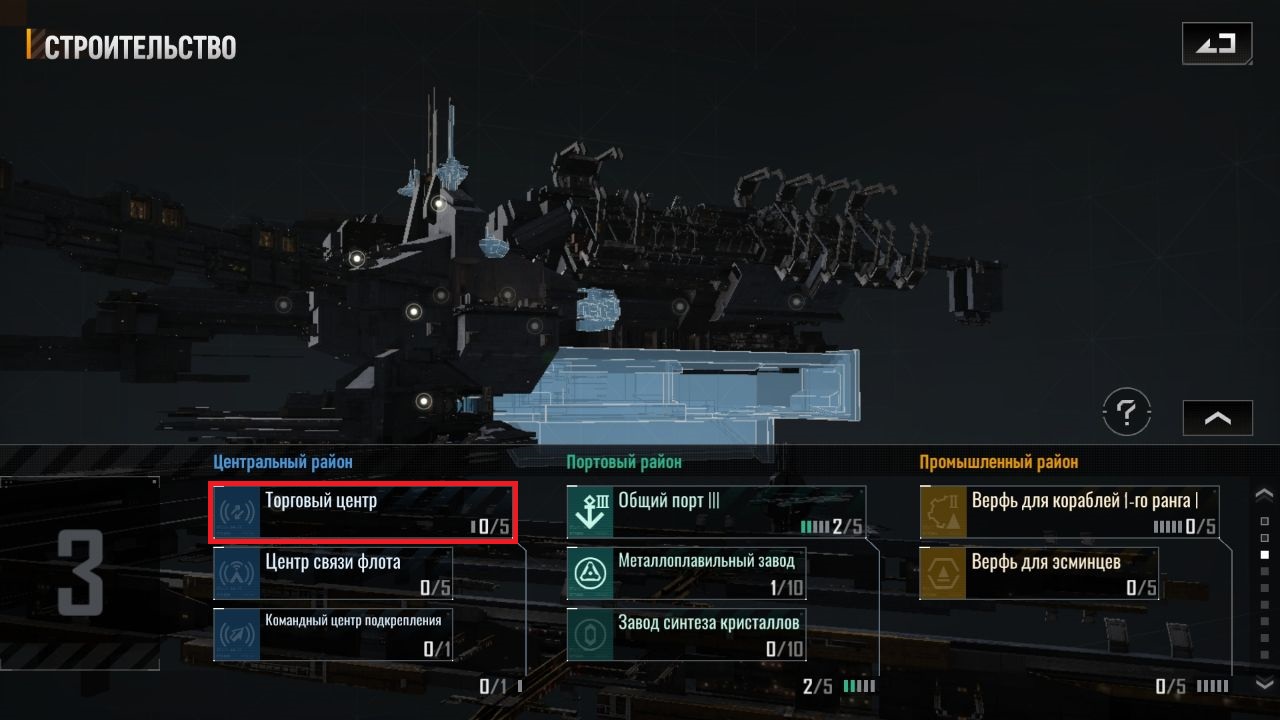 После постройки торгового центра космической станции на 3 уровне, появится возможность покупать корабли на станции.