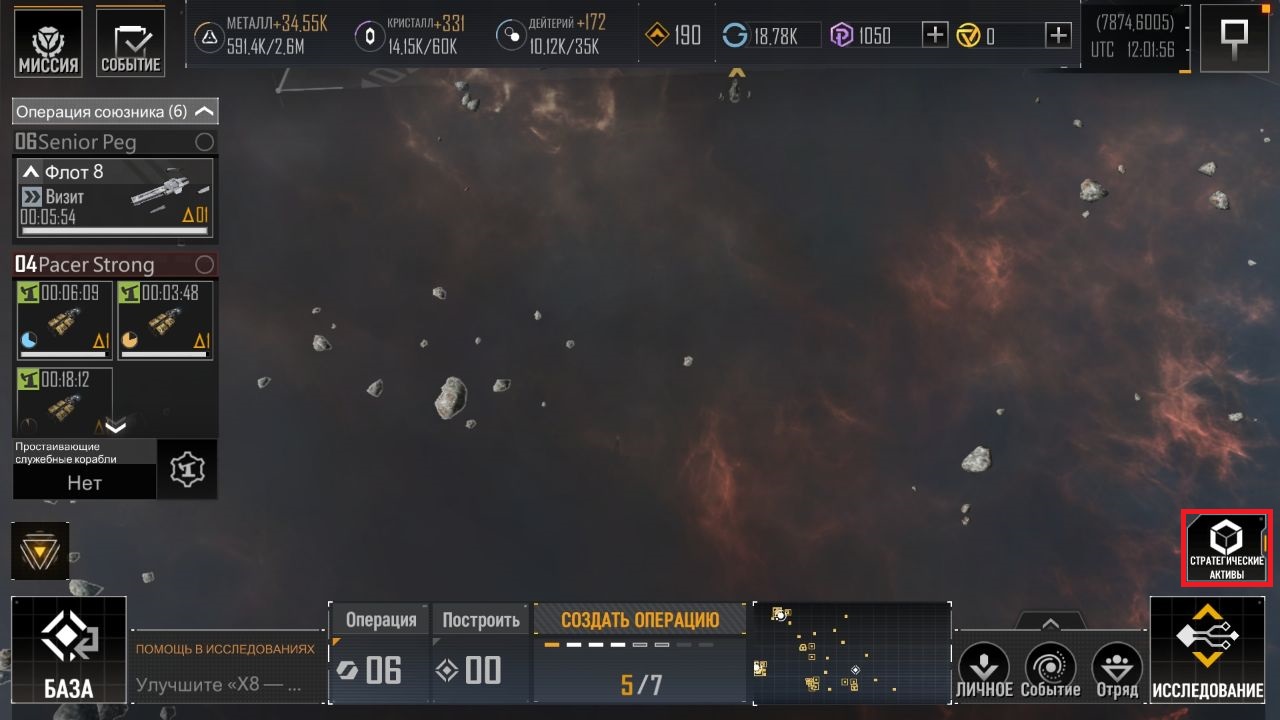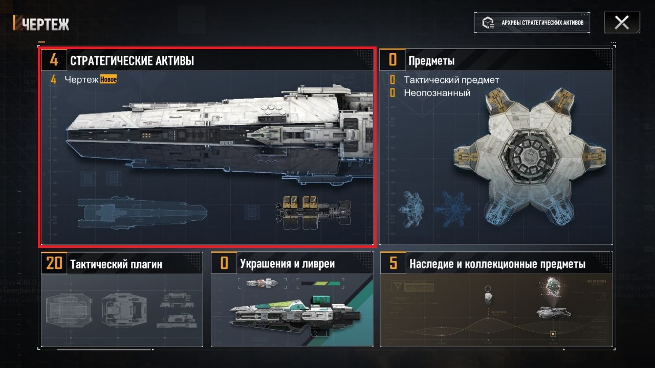 Как улучшить корабль: Нажать справа внизу на кнопку "стратегические активы"