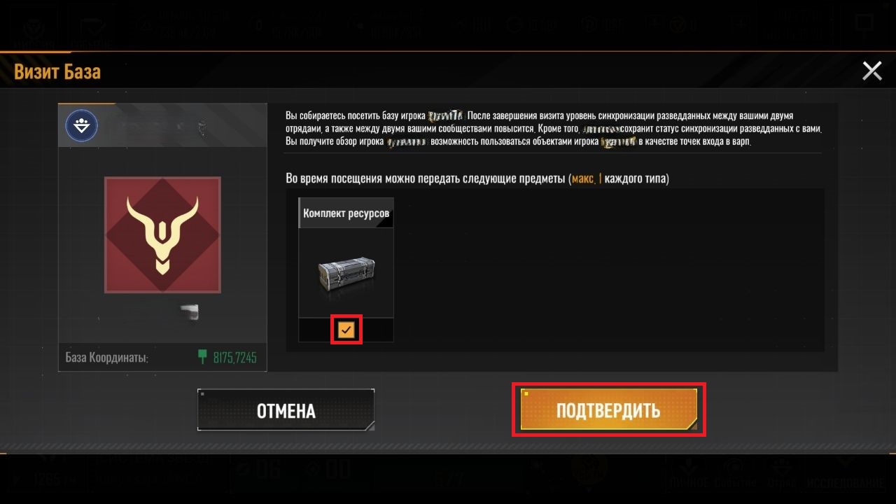 Поставить галочку под ящиком, союзник получит набор ресурсов и нажать подтвердить. Спасибо за участие в жизни сообщества.